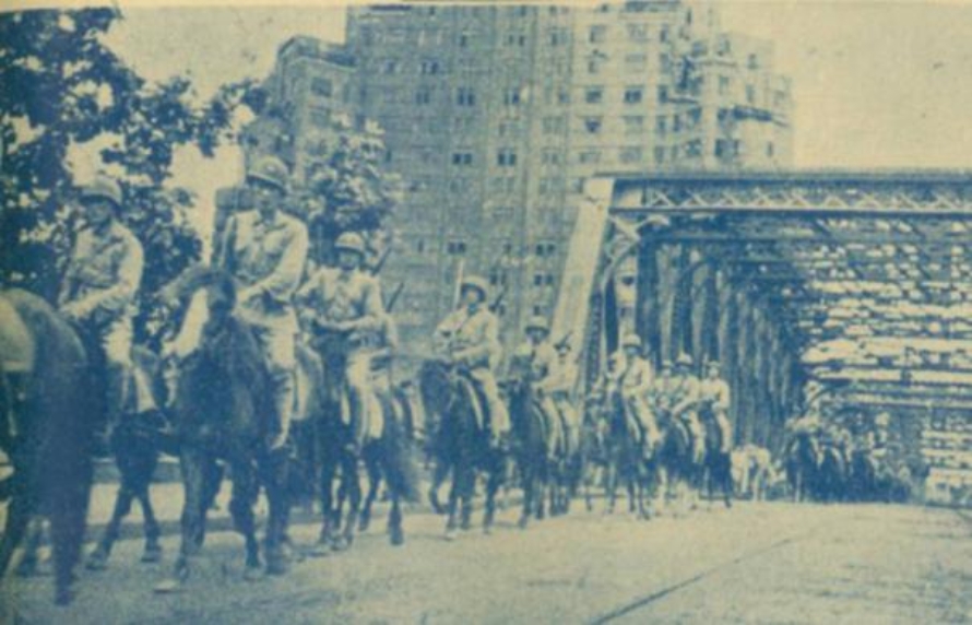 上海解放时,人民解放军队伍经过外白渡桥(1949)(上海市档案馆藏)