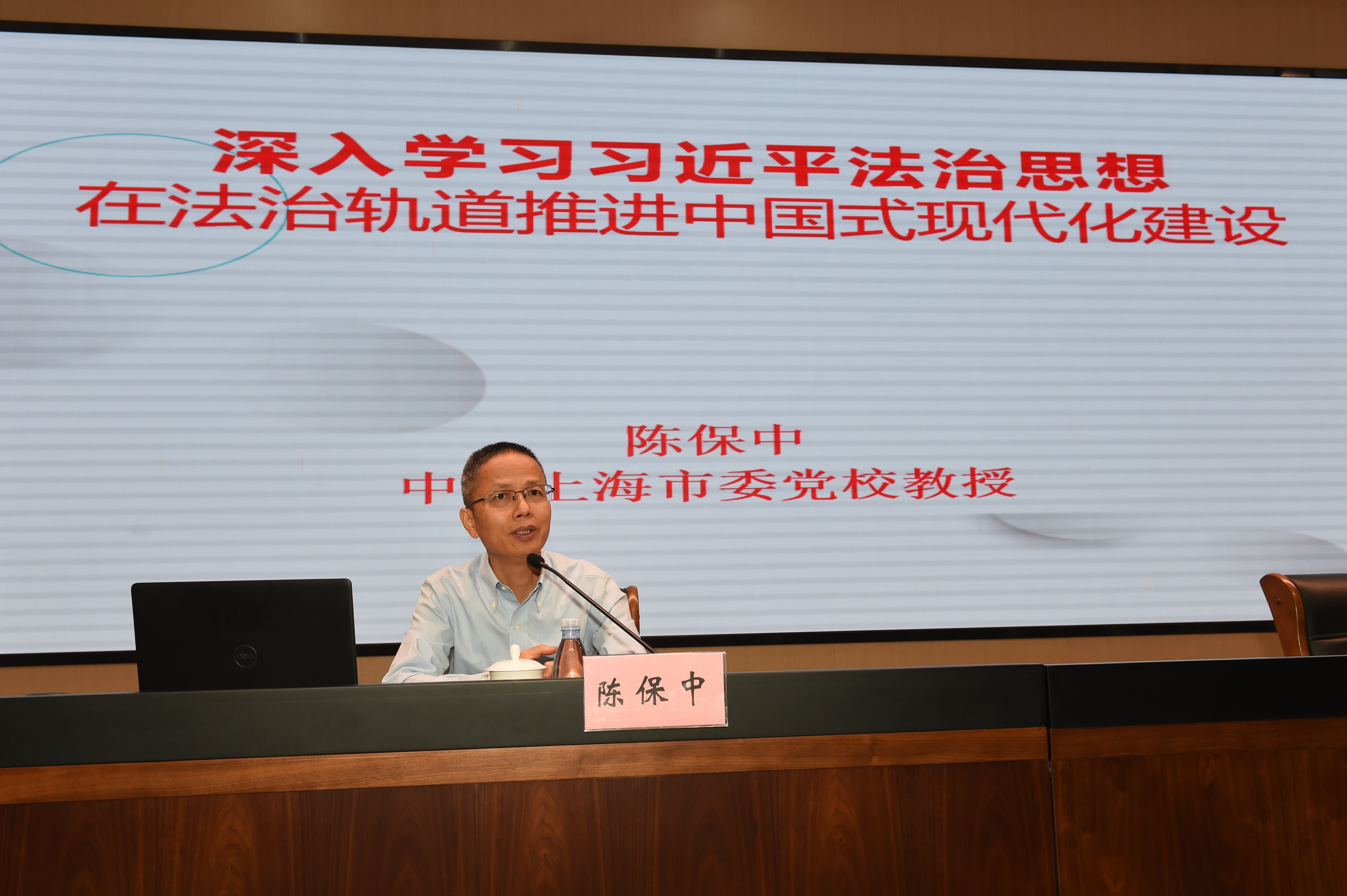 陈保中同志从讲授“法治是现代化的必然标配”“在法治轨道上全面建设社会主义现代化国家”“以习近平法治思想为引领推进法治建设”三方面内容展开,用接地气的语言、鲜活的案例,分析法治建设的历史进程和对实际生活、中国式现代化建设的重大影响,进一步提升了党员干部运用法治思维和法治方式推动发展、化解矛盾、维护稳定、应对各种风险挑战的意识和能力。