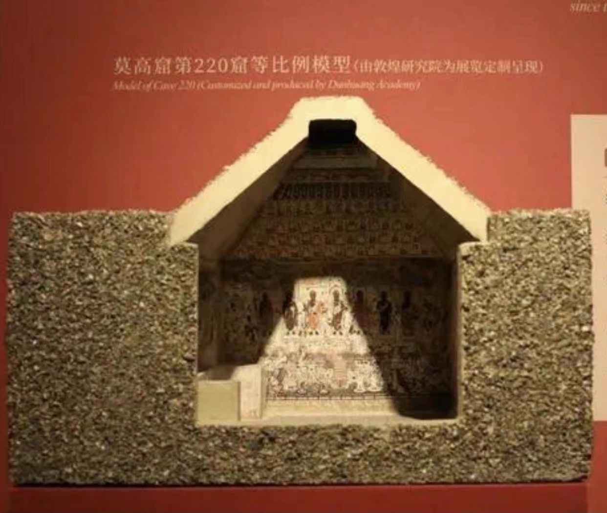 《敦煌奇境——传奇洞窟220窟之谜》展可谓是一次对220窟微视角而强深度的诠释:从一个有着传奇故事的洞窟开始,走进壁画中的世界,渐次揭秘这座传奇洞窟的发现之谜、营造之谜和乐舞之谜。敦煌研究院为展览定制的第220窟全窟迷你模型,高清再现了窟内壁画细节。