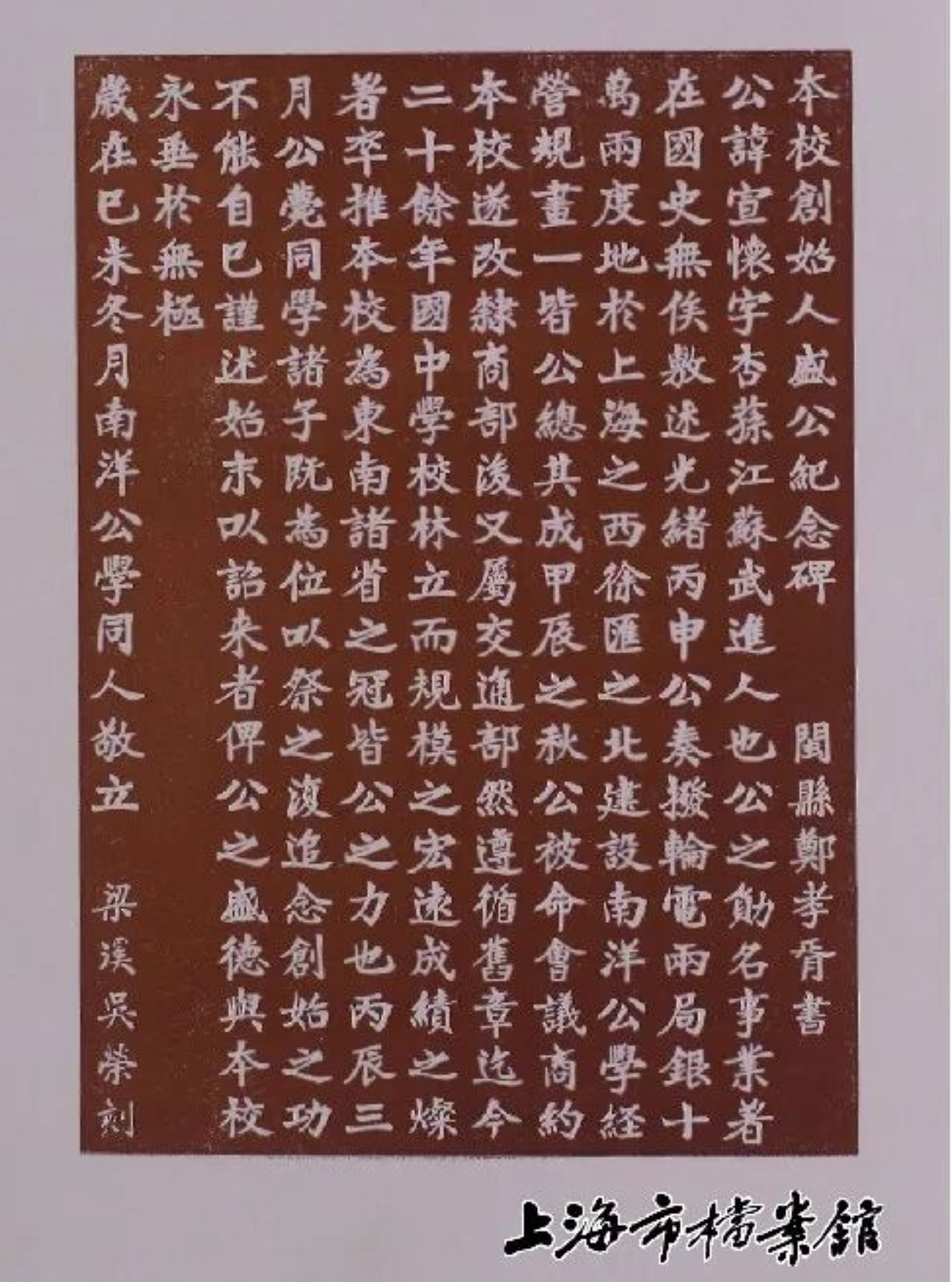 盛公纪念碑碑文(上海市档案馆藏)