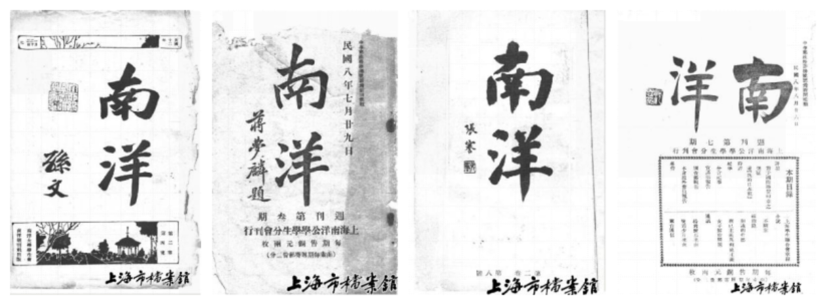 《南洋周刊》是南洋公学学生分会于1919年7月创办的校刊,是中国学生界较早发行的刊物,孙中山、蒋梦麟、张謇、沈恩孚等名人为其题写刊名。1919年五四运动爆发后,南洋公学学生率先响应,成立南洋公学学生分会,成为上海学生联合会发起单位之一。在五四运动的高潮中,学校学生先后创办《南洋日刊》与《劳动界》。前者“唤醒同胞,以扶危局”,后者反映劳动人民生活状况。同年7月,两种刊物合并,《南洋周刊》正式创刊。