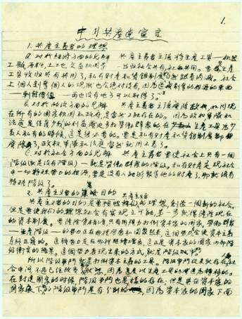 1920年11月,中国共产党上海发起组起草的《中国共产党宣言》