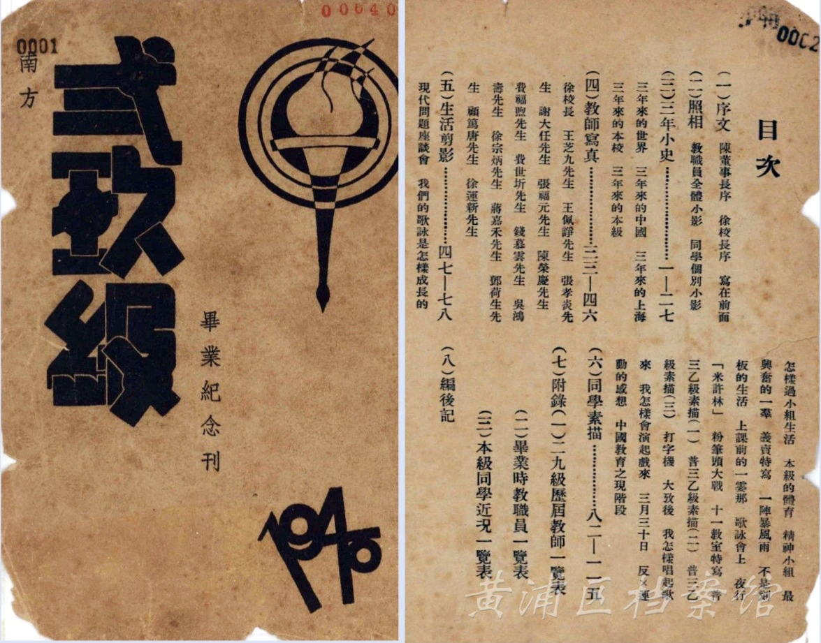 1937年淞沪抗战爆发后,位于南市老城厢的敬业中学被迫于11月迁入租界,改称私立南方中学。1938年10月,学校地下党组织成立,蒋照明(乔石)曾任南方中学地下党支部书记。抗战期间,在党的领导下,该校成为上海学界抗日救亡运动的活动中心之一。1945年10月,敬业中学复校。本次展览展出了馆藏南方中学38、39级毕业纪念刊,内含南方中学校歌。