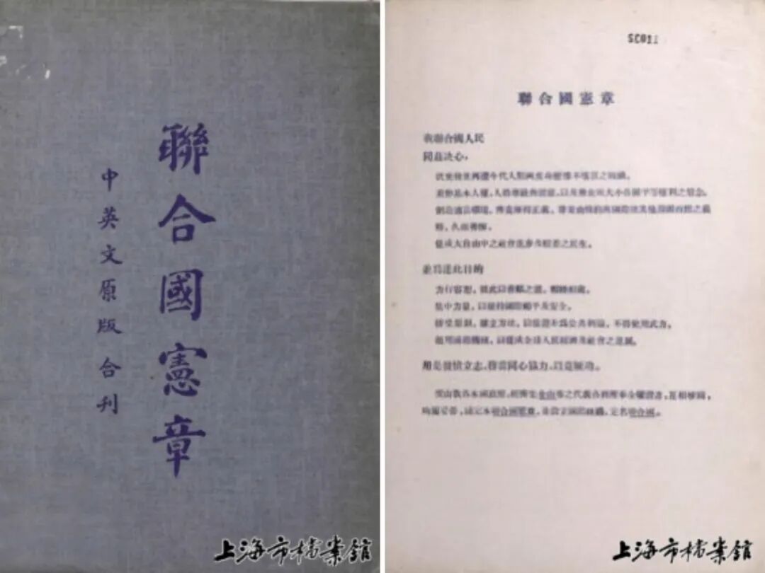 1945年出版的《联合国宪章》(中英文原版合刊)(上海市档案馆藏)