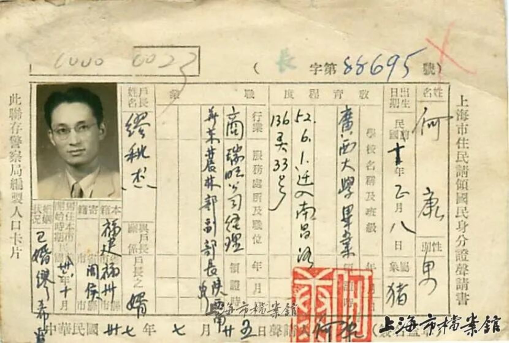 上海市住民请领国民身份证声请书——何康