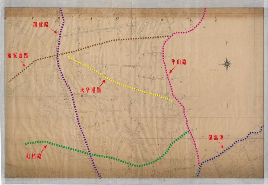 现阶段若没有去敏化、轻量化和可视化,我们的编撰与研究也就没有机会去面对这张泛黄的《上海华界沪西(南)华山路以西道路规划图》,谁能想象出历史上的虹桥路除了别墅还曾经赛马嘶鸣、厂房林立和河巷遍布呢,谁又能断言如今上天入地的轨交三号、四号线曾经是史上几经再造,时有时无的“杭甬铁路”呢,面对这张泛黄的“无名图”,面对这张泛黄的《上海华界沪西(南)华山路以西道路规划图》,我们唯一确认的是应该有更多的图纸可以去敏化、轻量化和可视化,可以去编撰与研究。