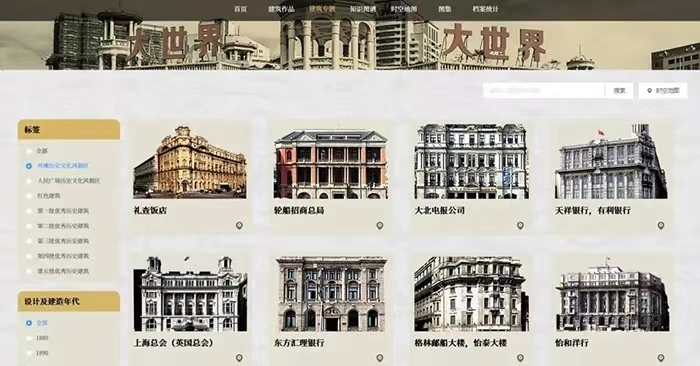 19.上海市城市建设档案馆《基于历史档案数据挖掘的多维全息上海近代历史建筑专题知识库建设研究》项目,充分依托和挖掘丰富的馆藏资源,建立了体量巨大的历史建筑档案专题知识库,开发了基于时间和空间维度,集建筑作品、专题检索、关系图谱、数据统计等功能一体,与GIS系统对接的“历史建筑档案展示利用系统”,目前已形成了多批次多专题历史建筑档案展示成果,具有良好的深化应用前景。