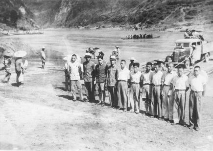 中华铁工厂第一批去广西的职工,在横渡乌江后集体留影。