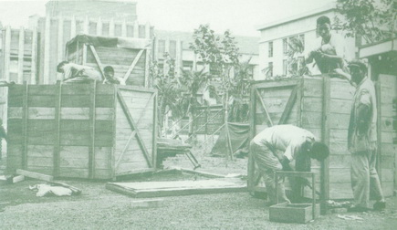 1956年,交通大学师生为迁往西安做好设备装箱起运准备。