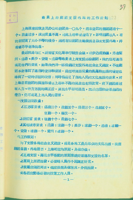 上海是我国文化领域的重要基地,院团林立,人才汇集,而其他不少城市则相反,文化发展遭遇瓶颈。为此,1956年初,上海市文化局专门制定《关于动员上海剧团支援外地的工作计划》,准备将40个越剧、甬剧、沪剧等剧种的剧团支援各地。