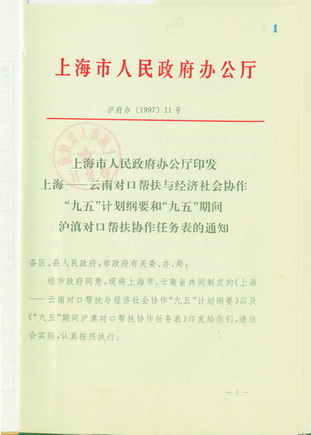 《关于上海——云南对口帮扶与经济社会协作“九五”计划纲要的通知》未划控