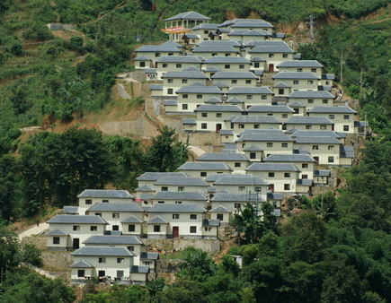 2009年,异地搬迁后的云南莽人村寨新貌。