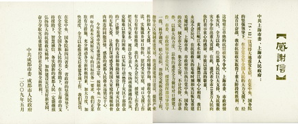 2009年,成都市委、市政府致上海市委、市政府的感谢信 。