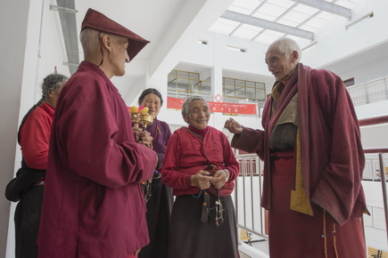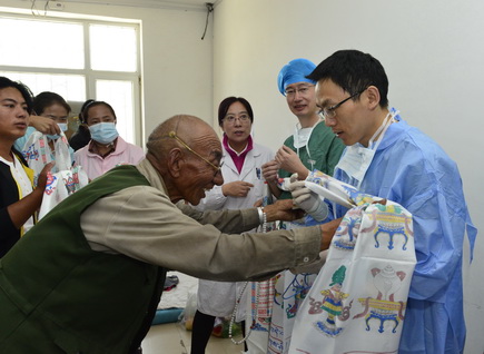 上海医生赴青海久治县开展“慈善光明行”义诊活动,术后病人送哈达表示敬意。