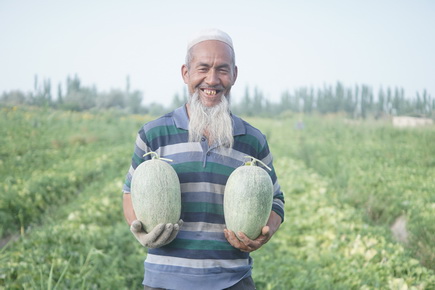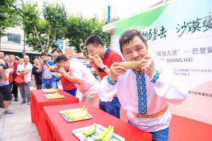 上海援疆打造“双线九进”助力喀什特色农产品销售。图为巴楚留香瓜进社区品鉴活动。