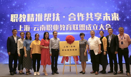 通过打造联盟,推进职业教育精准帮扶。图为2018年7月,上海—云南职业教育联盟成立大会现场。目前,上海已与云南、贵州遵义市、新疆喀什地区、青海果洛州建立“一市四地”职业教育联盟。