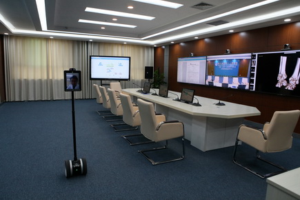 在喀什二院的南疆(喀什)新型医疗联合体互联网远程医学中心,机器人大夫正在工作