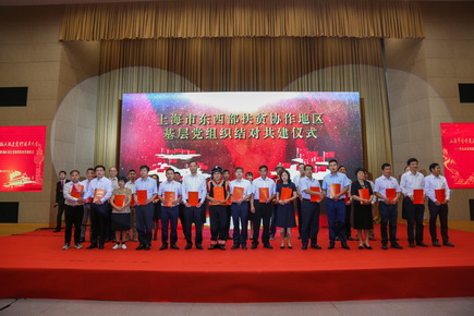 抓党建促东西部扶贫协作和对口支援工作。图为2018年6月,在上海举行东西部扶贫协作地区基层党组织结对共建仪式,云南、贵州遵义市部分贫困村党组织与上海相关街镇等党组织签约携手奔小康。