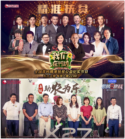 政府与媒体合作加强公益宣传,通过媒体平台引导市民关注、参与脱贫攻坚。东方卫视精准扶贫公益纪实节目《我们在行动》(上图)和阿基米德FM《自然的馈赠》,帮助贫困地区销售农产品超过1.4亿元;东方卫视热门综艺节目《极限挑战》(下图)积极参与助农扶贫。