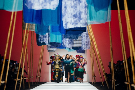 借助国际化舞台,引导世界关注对口地区民族传统文化。图为2019年4月,云南楚雄彝绣特色服装服饰亮相上海时装周。