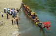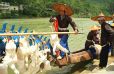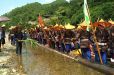 “划龙舟”流传于清水江流域台江县与施秉交界处,以台江的施洞镇为中心,上起施秉平寨,下迄清水江岸的平兆场和小江河的嘎等、榕山等60多个苗族村寨,面积400余平方公里的地域内。它以水上体育竞技为载体,融苗族的祭祀文化、服饰文化、歌舞文化、饮食文化为一体,相袭成节。活动日期是每年农历五月二十四日至二十七日。 |