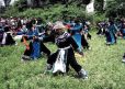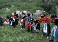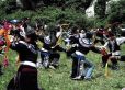 贵州省赫章县是中国古代大西南彝族发展的腹地,被誉为“夜郎文化考古殷墟”的可乐曾是它的都城,之后曾先后是夜郎和俄索部的治所。彝族古代先民用聪明才智,开发、建设了赫章。滇、夜郎、巴、蜀、黑、白六大侯国,皆为彝族古代先民第三十一世君笃米所分封。六大侯国又自封有诸多君长列国。因此,彝族先民经历着频繁的战争。彝族先民在护送阵亡将士时,为了抒发悲痛之情,在途中跳一种战状舞。这种战状舞演变为祭祀告别的舞蹈。这就是今天的彝族铃铛舞。彝族铃铛舞,俗称跳脚,彝语称“恳合呗”,意为灵体告别舞,是彝族人民在祭祀场中演跳的一种传统民间舞蹈,在贵州赫章保留着完整形态,尤以该县珠市乡为典型。通过祭祀活动,跳“恳合呗”,唱祭祀礼仪之歌,以尽子孙之孝,祭奠逝者,安慰生者。
