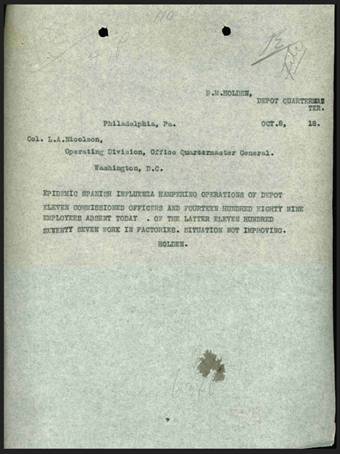 1918年10月8日,费城军用仓库员工感染情况汇报